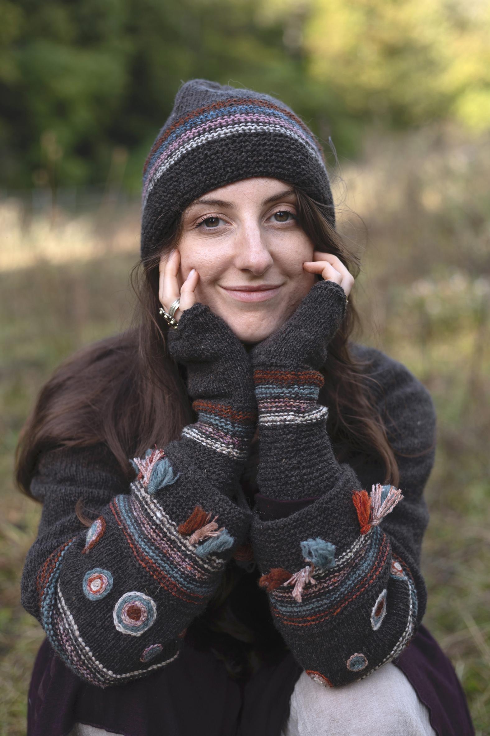 Le bonnet les mitaines Hocoka s'assortissent à la veste du même nom.
