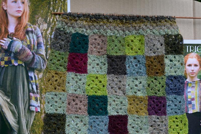 Les carrés crochetés avec un fil sont de la même taille et l'échantillon de tricot est le même.