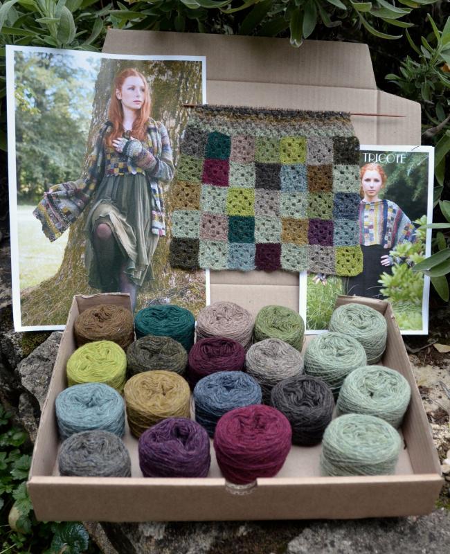 J'ai le plaisir de vous proposer un coffret de 16 coloris de pure laine Couleurs d'Ecosse pour réaliser l'étole, le cardigan ou les mitaines Louise.