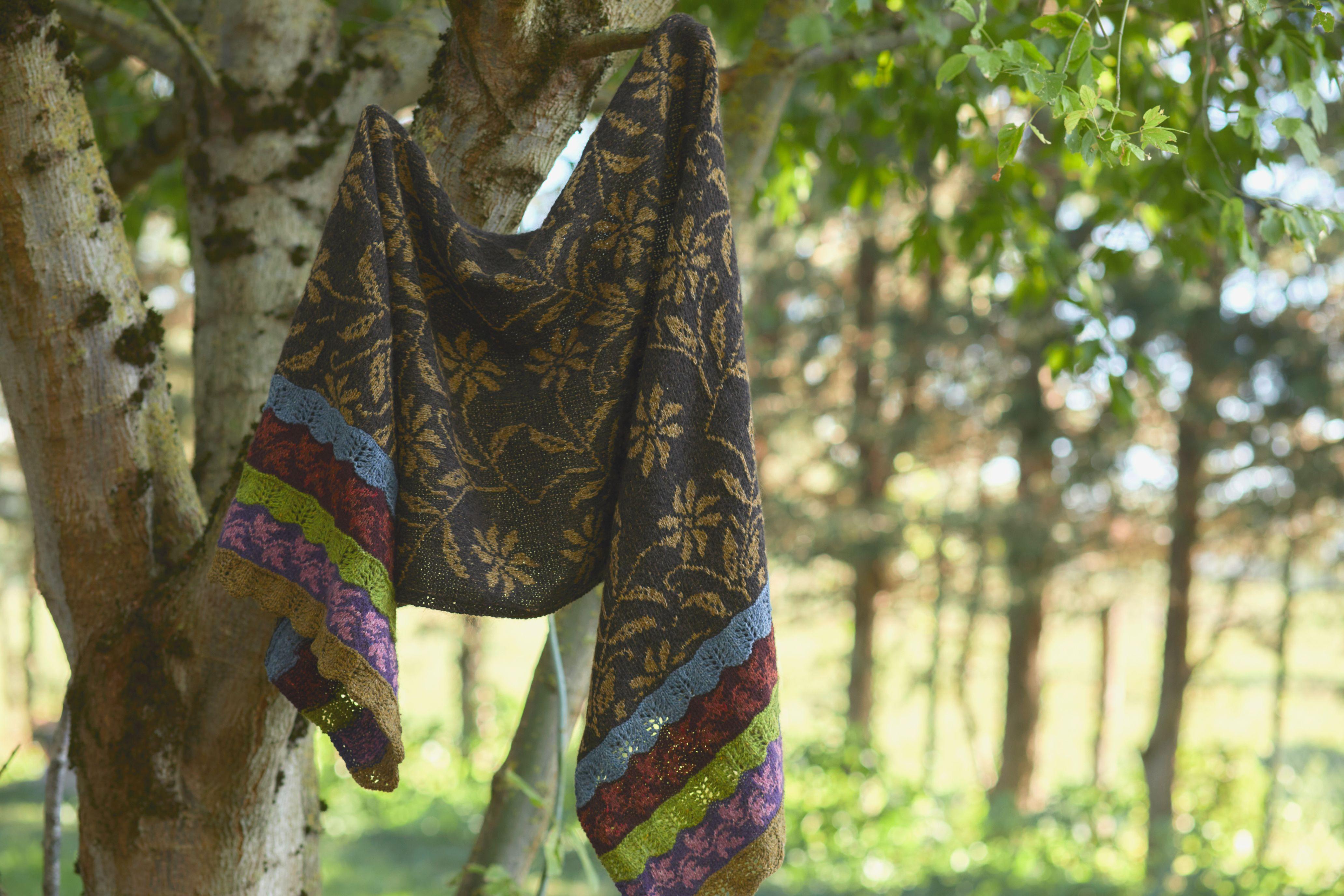 L'étole Aubépines est réalisée en commençant par le motif de la partie centrale.