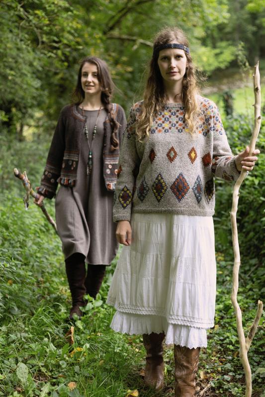 La veste Hocoka (cercle sacré de la vie) est réalisée au point mousse rayé et au point de jersey.
